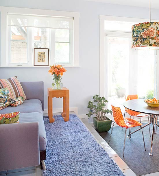For a color scheme that provides the most dynamic visual interest, opt for a complementary palette. Colors that lie opposite each other on the color wheel, such as orange and blue seen here, will offer high contrast, giving you a simple combo with a lot of zing.
